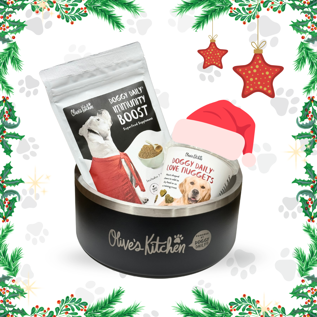 This all-in-one bundle makes supporting your dog’s health simple and delicious. From nutritious meals to tasty rewards and the perfect bowl to serve them in, it’s everything your dog needs to thrive - all from Olive’s Kitchen, where we care about your pets as much as you do.
